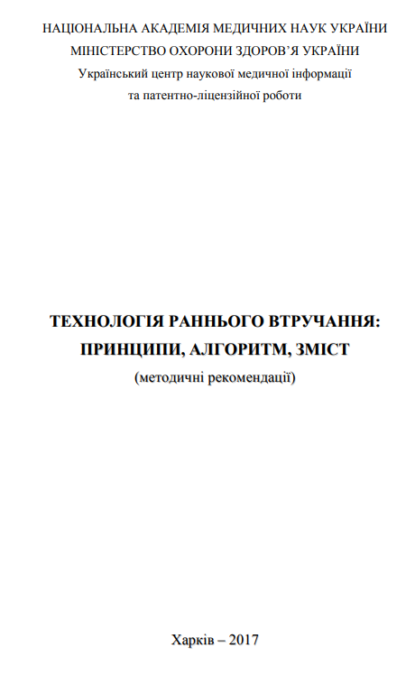 Методичні рекомендації «Технологія раннього втручання: принципи, алгоритм, зміст» (НАМН України та МОЗ України)