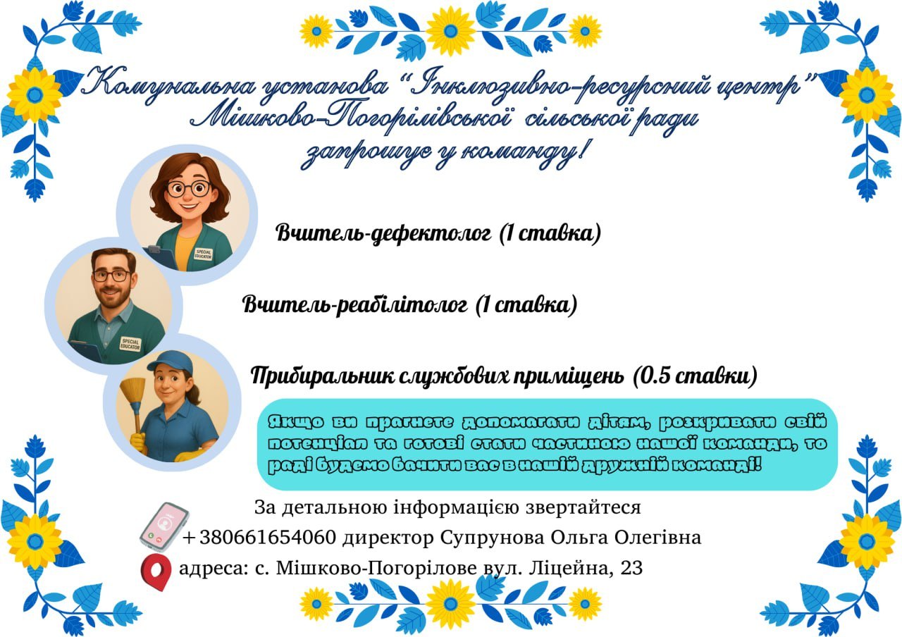 Запрошуємо спеціалістів в наш чудовий колектив!!!